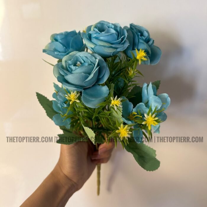 Home Artificial Flower & Leaves Flower Bunches Blue Rose Bunch with Small Yellow Blossoms