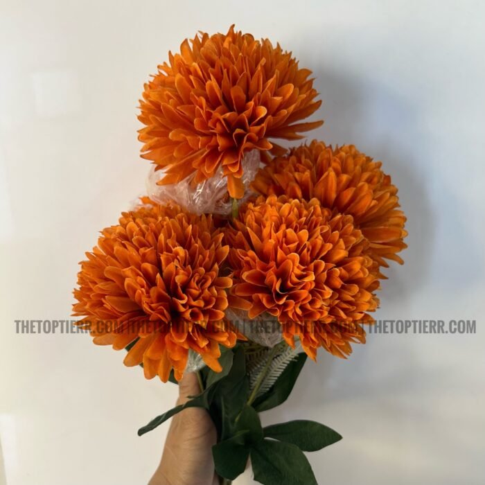 Home Artificial Flower & Leaves Flower Bunches Dahlia Bunch- Orange Color