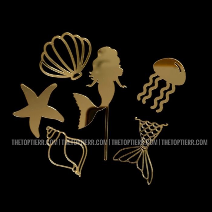 Mermaid Theme Golden Acrylic Cutout- (Set of 6)