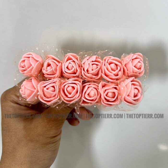 Mini Foam Rose Bunch With Net – Baby Pink